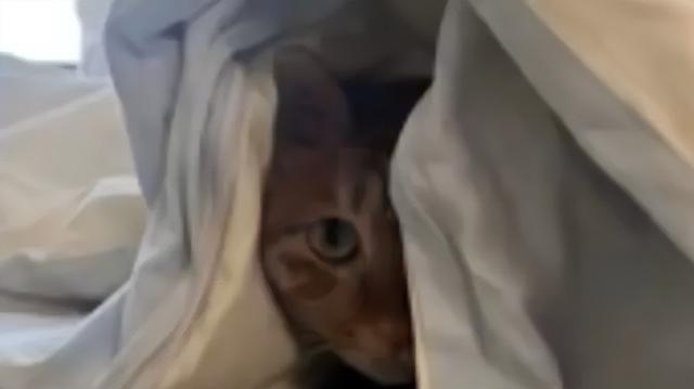我家小猫平时顶数它嘴厉害,但只要听到有人敲门,立马藏到被子里。