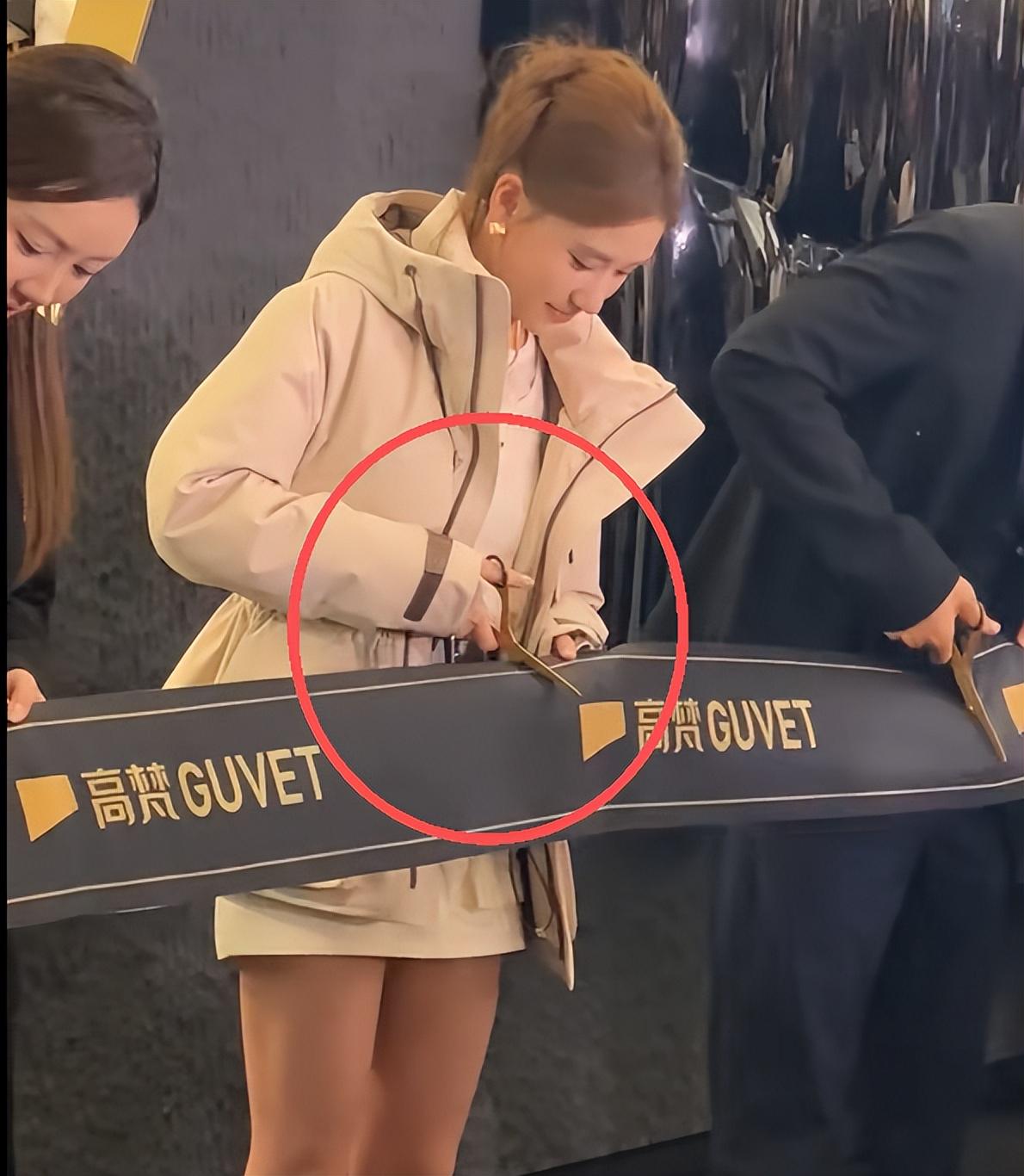 品牌方的剪彩活动上,何超莲表现得十分得体。一开始,她双手规规矩矩地放好,做好剪彩准备,眼睛看向镜头,留下剪彩的合影。